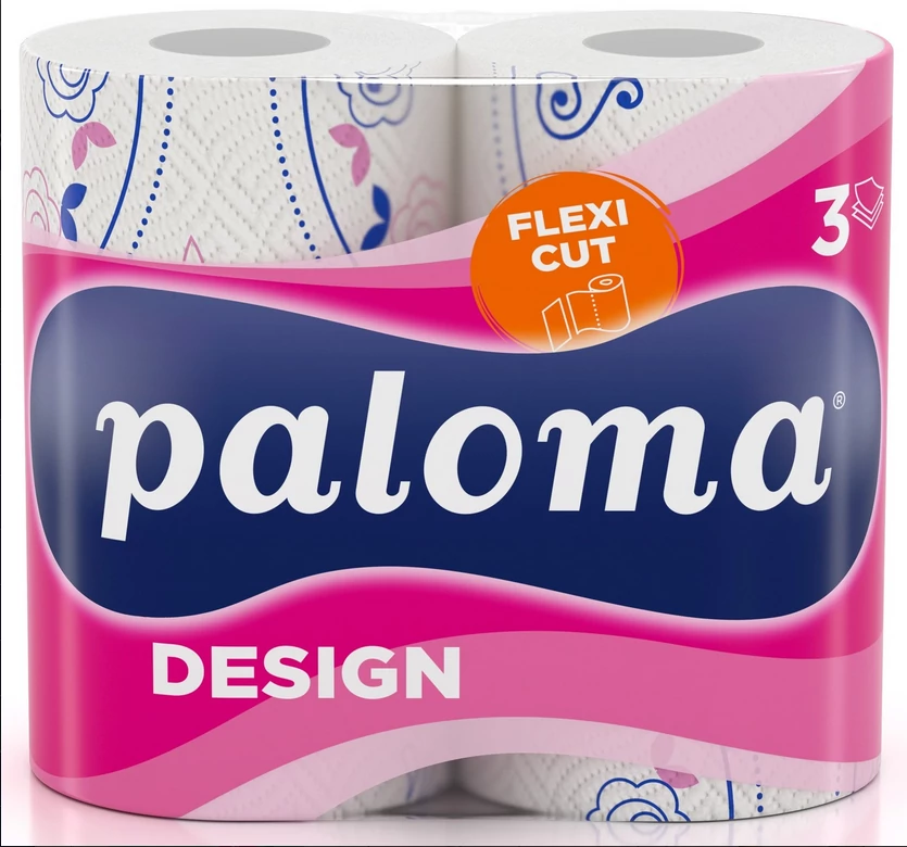 Paloma Papírtörlő FLEXI SHEET DESIGN 3 Rétegű 2 Tekercs 145 Lap Színes
